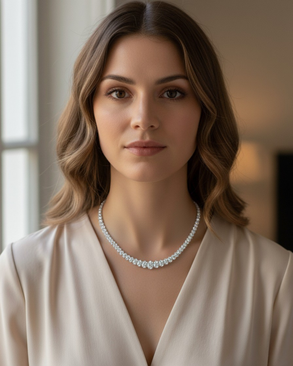 With a continuous row of glistening diamonds, they bring a touch of high-end luxury to any neckline. They have the ability to transform any outfit into something memorable, whether the garment in question is a slinky evening gown or a classic button-down. Our lab-made diamond tennis necklaces are the perfect choice for your formal occasions, such as weddings, red-carpet moments, life milestones, and other special events.