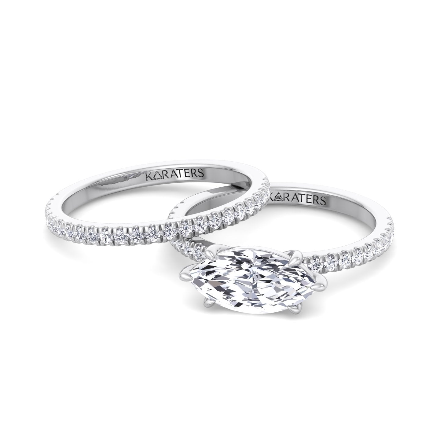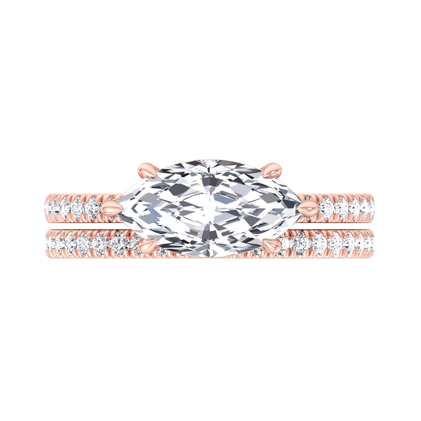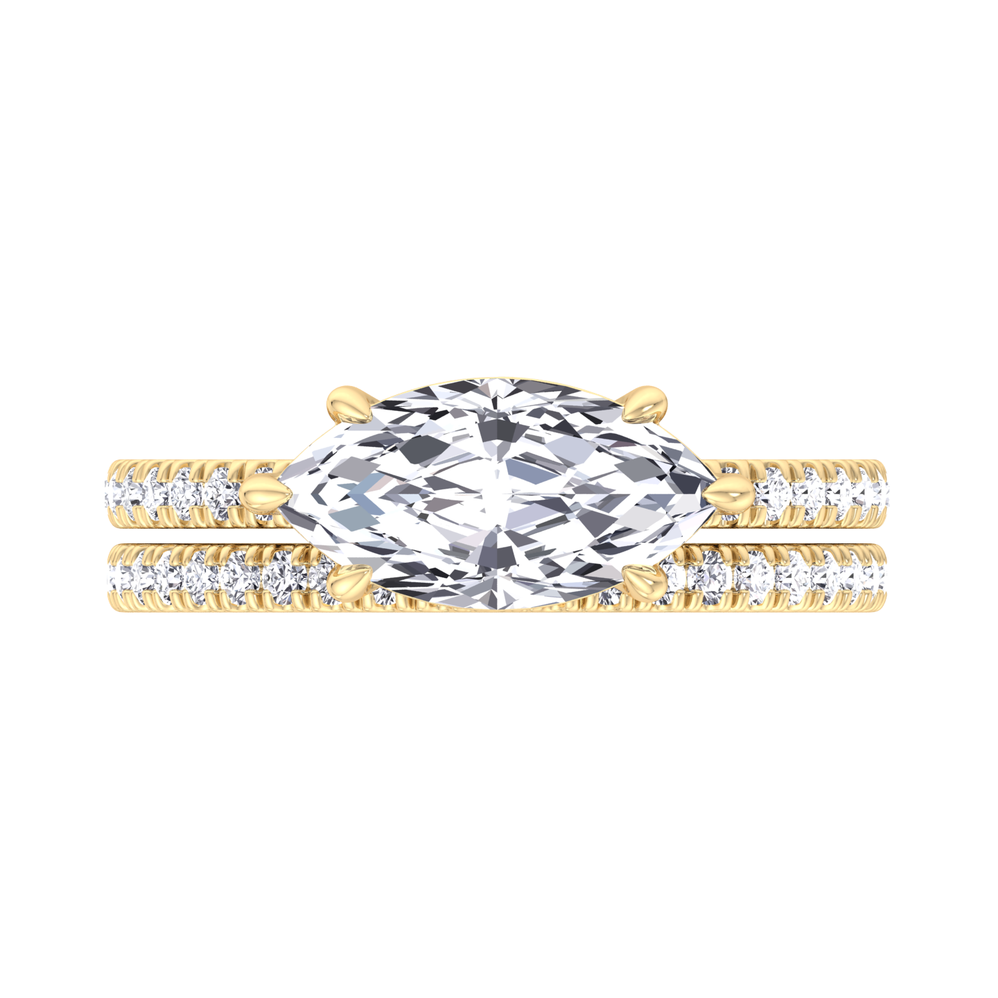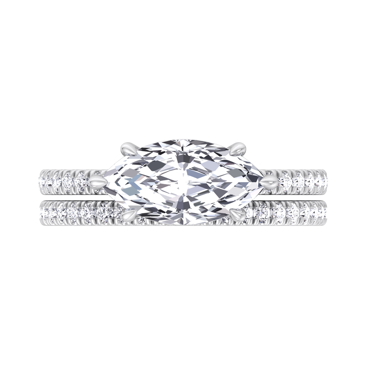 Marquise Shape Lab-Grown Diamond Wedding Set with an east-west marquise center stone in a sleek setting, paired with a pavé diamond band. A modern twist on a classic style, offering brilliance, balance, and timeless elegance.