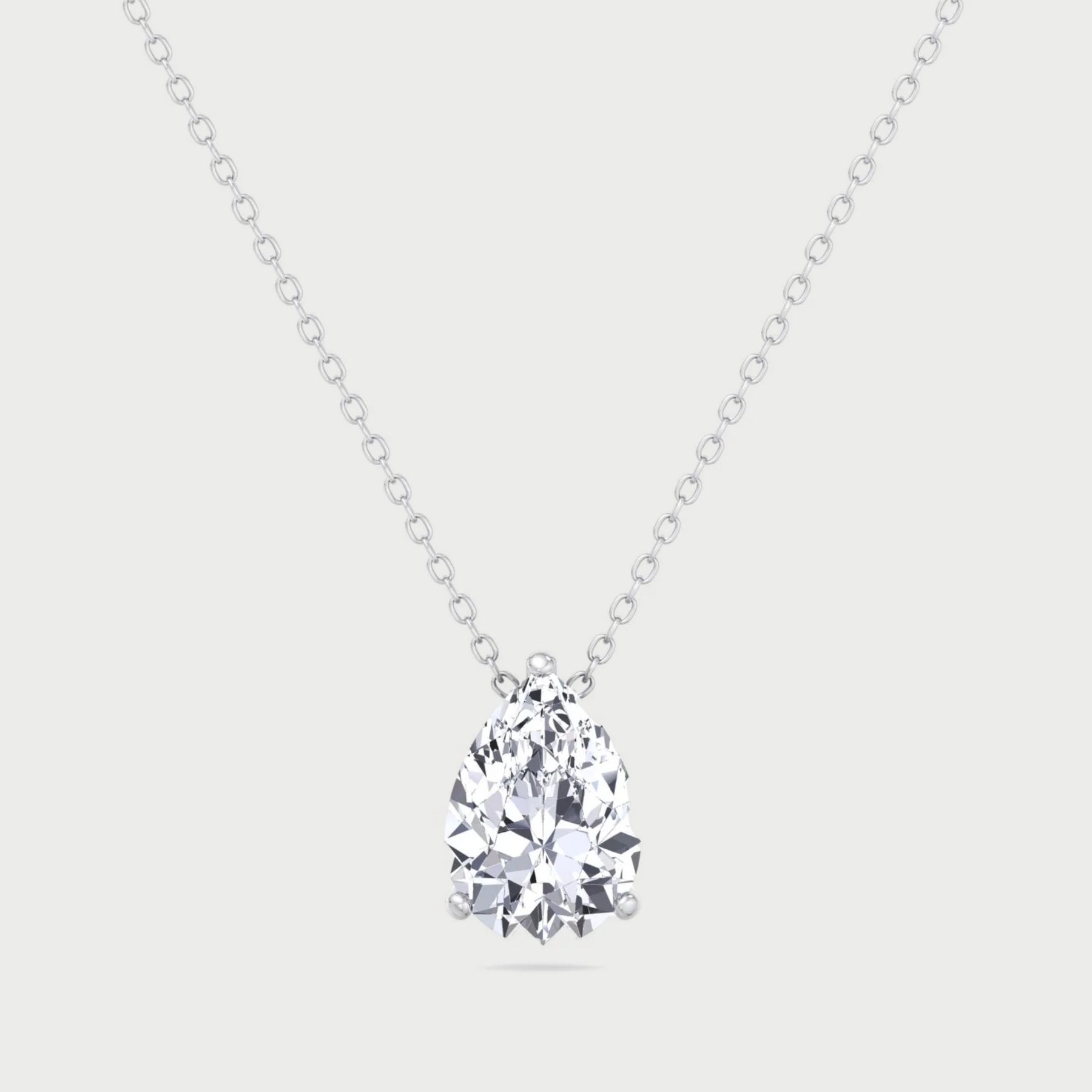 Simple yet striking, the Floating Pear Shape Lab Grown Diamond Pendant features a single pear-shaped lab grown diamond held in a classic prong setting, designed to rest delicately on the chain for a clean, floating effect. The teardrop silhouette brings a soft, elegant profile, while the minimal structure allows maximum light and brilliance to shine through.