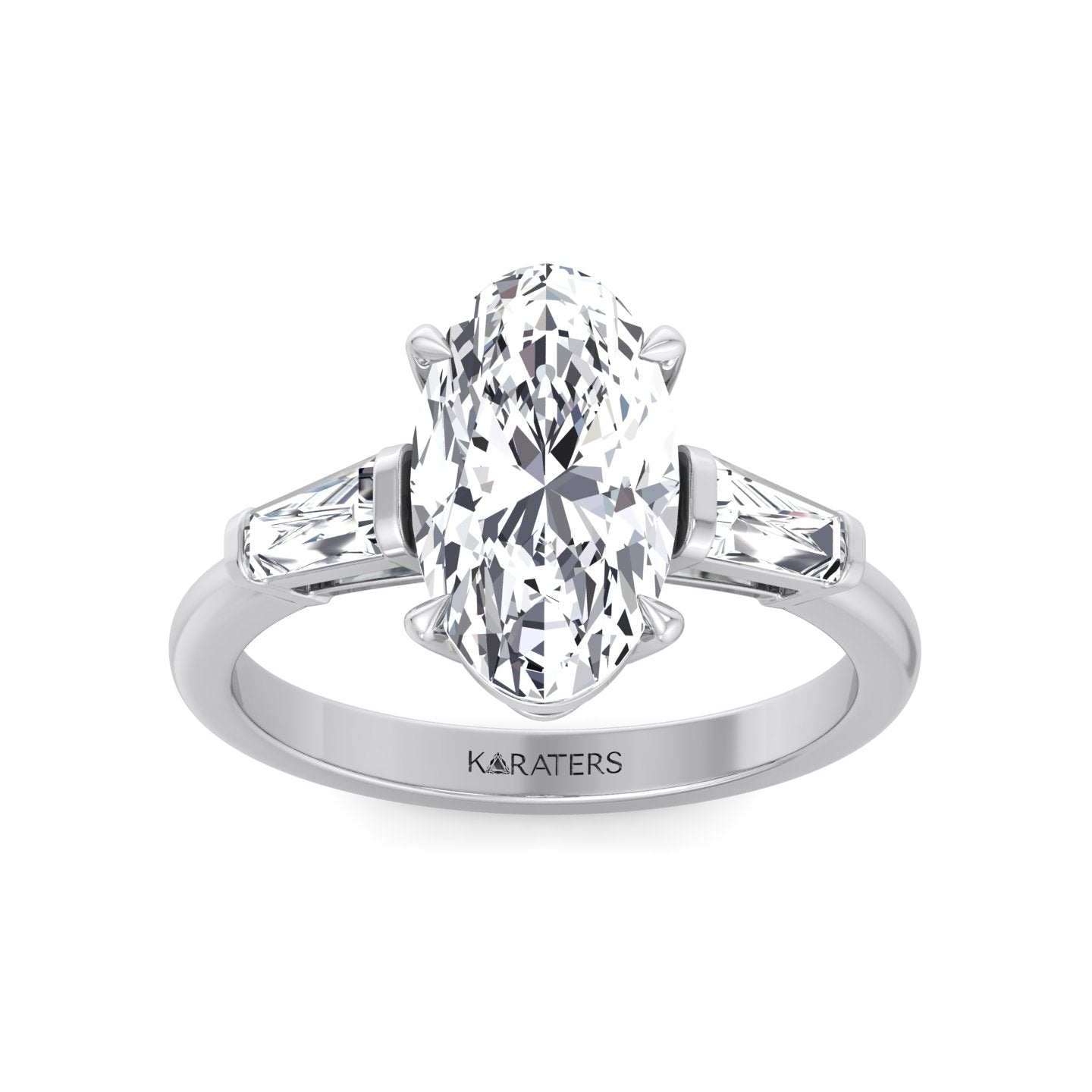 Moval Lab-Grown Diamond Engagement Ring with Tapered Baguette Sidestones White Gold