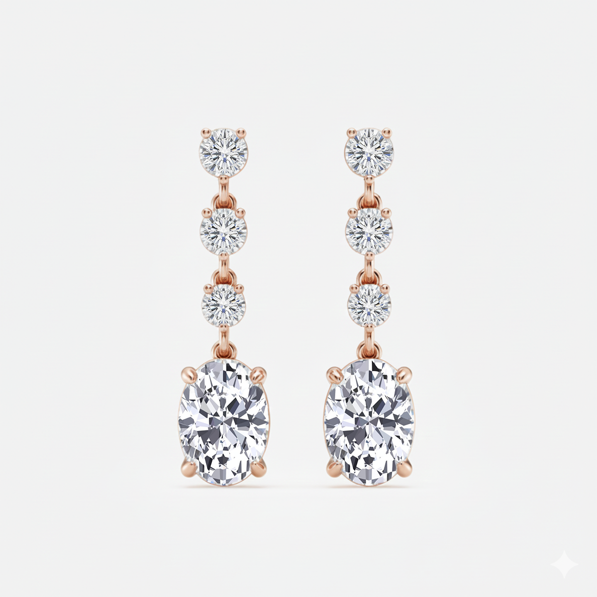 Oval and Round Shape Lab Grown Diamond Drop Earrings Rose Gold 18K