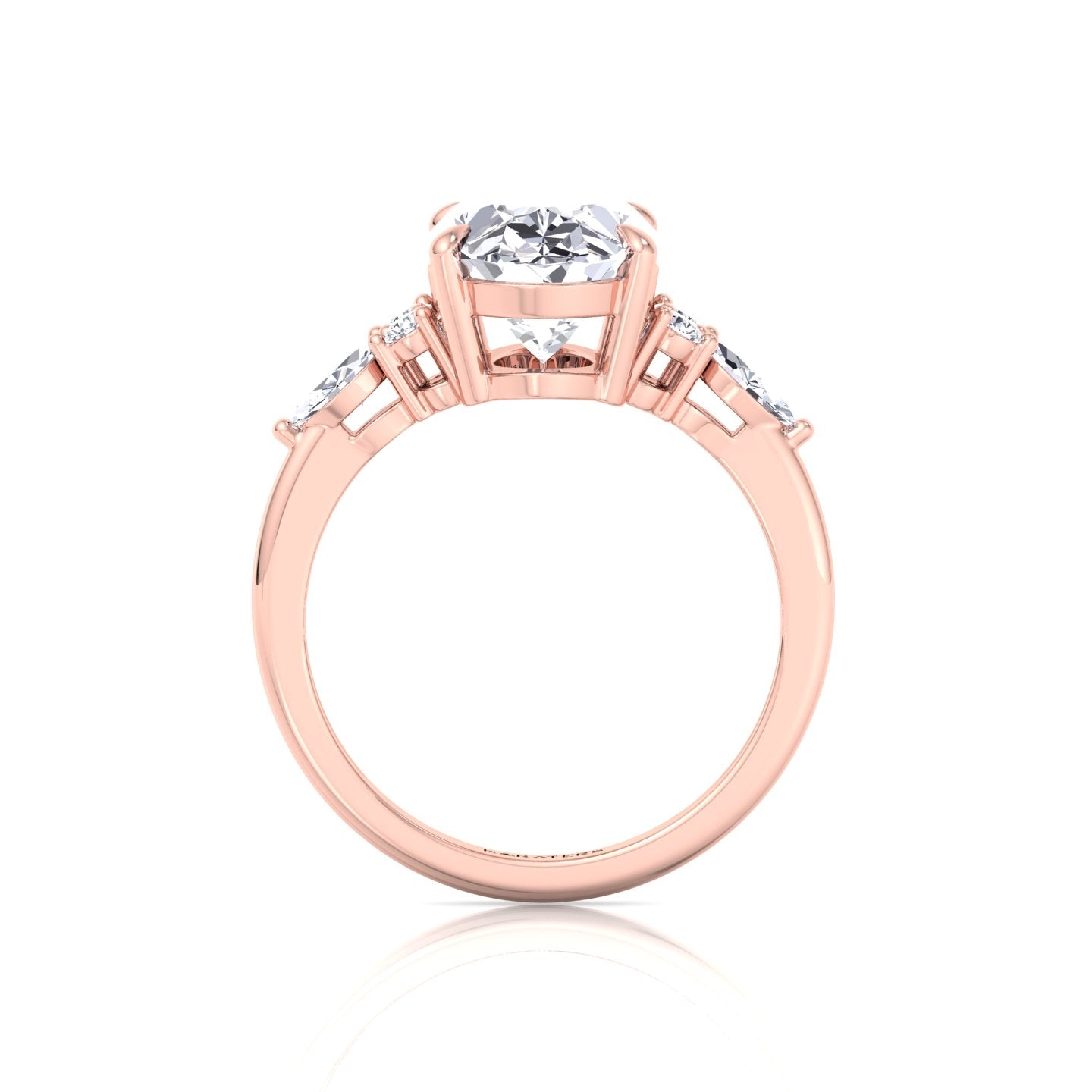 Oval Cut Lab Grown Diamond Engagement Ring with Round and Marquise Sidestones Rose
