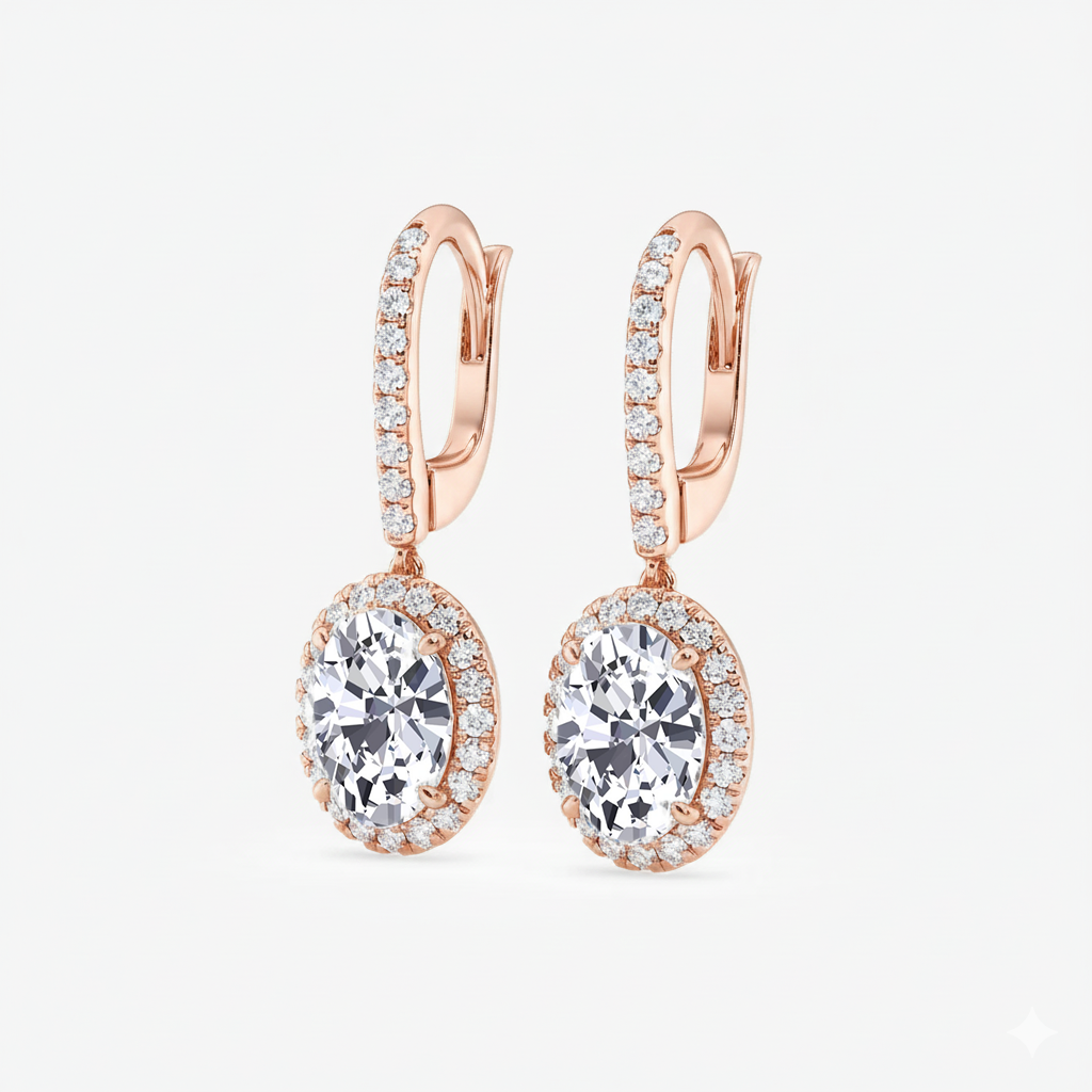 Oval Shape Lab Grown Diamond Halo Drop Earrings lifestyle rose gold