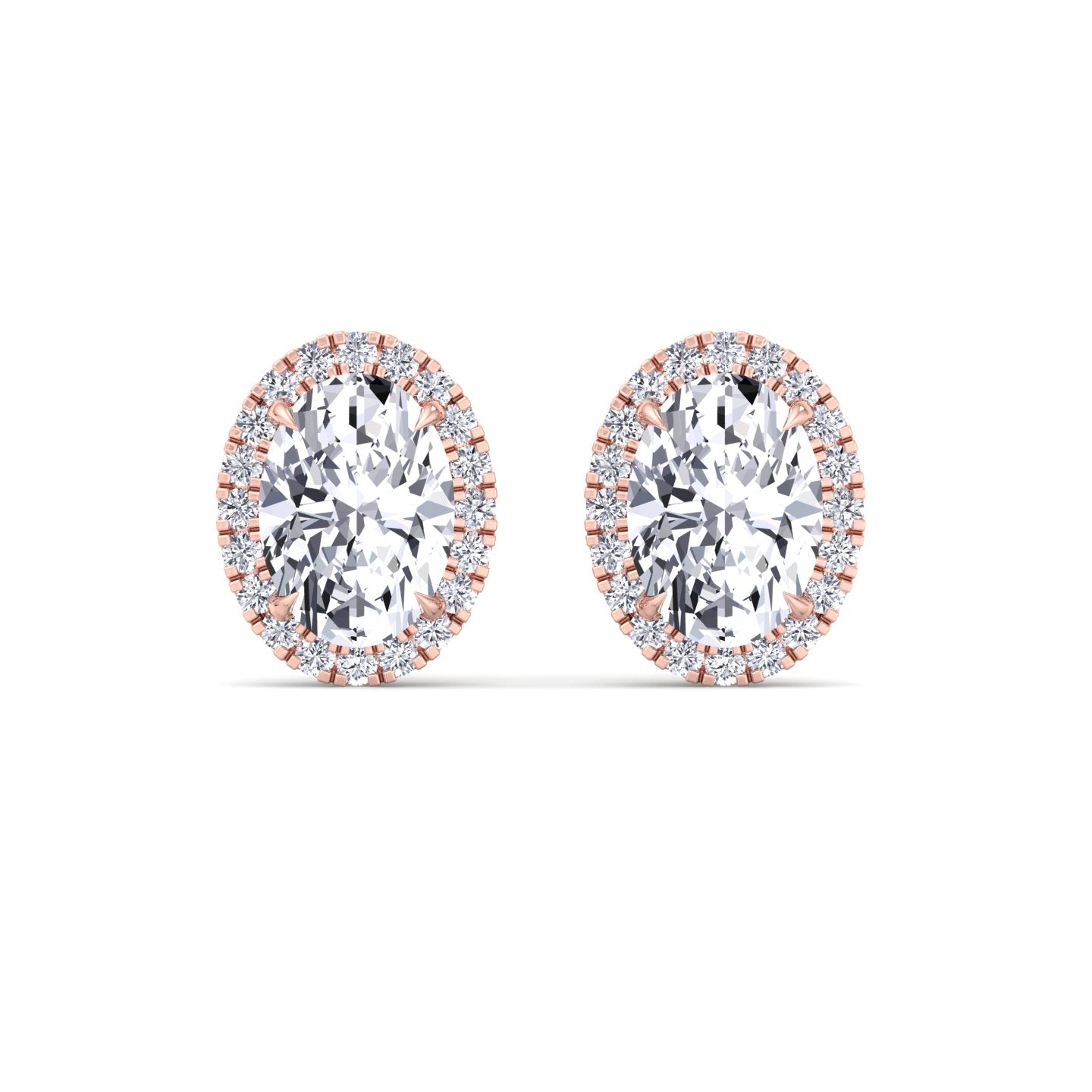 Oval Shape Lab Grown Diamond Halo Studs Rose Gold 18K