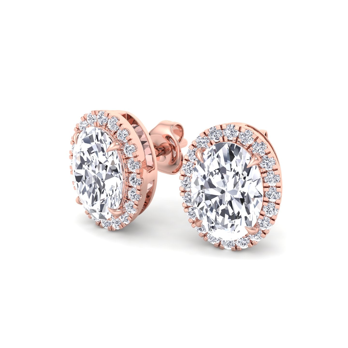 Oval Shape Lab Grown Diamond Halo Studs Rose Gold