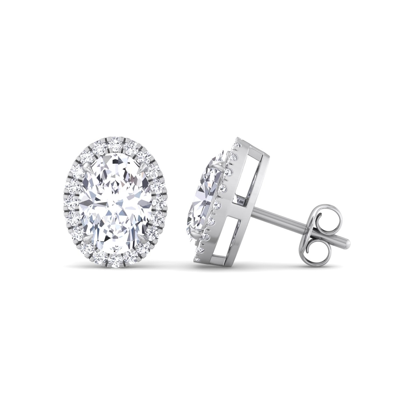 Oval Shape Lab Grown Diamond Halo Studs White Gold