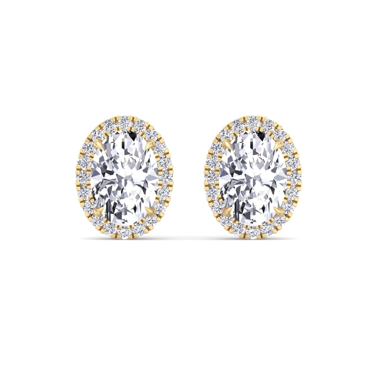 Oval Shape Lab Grown Diamond Halo Studs Yellow Gold 18K