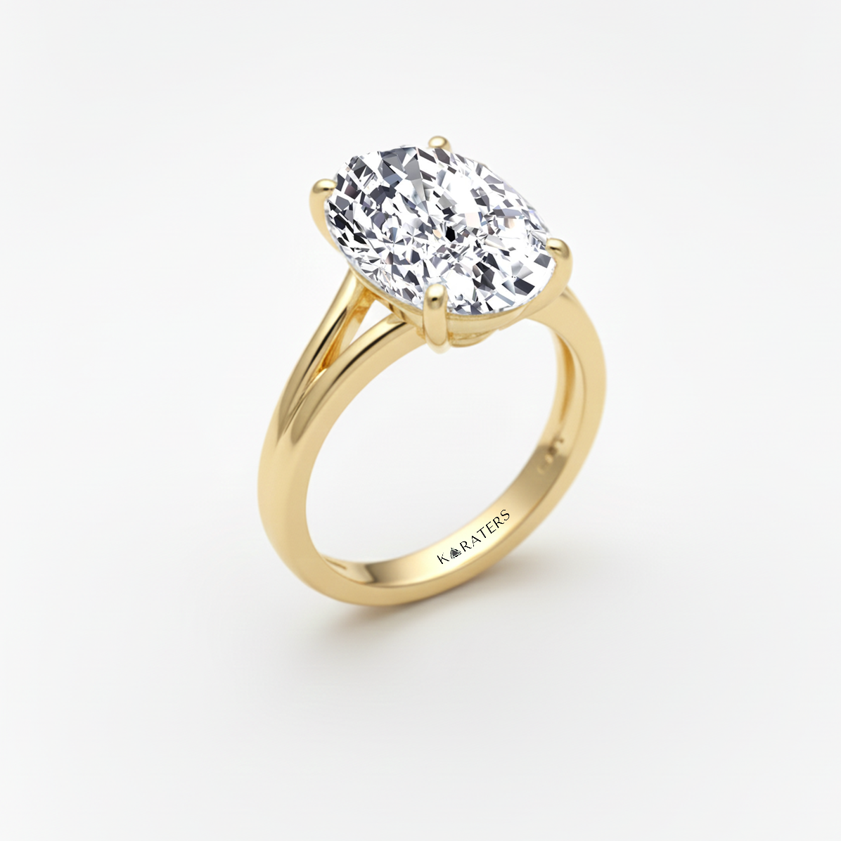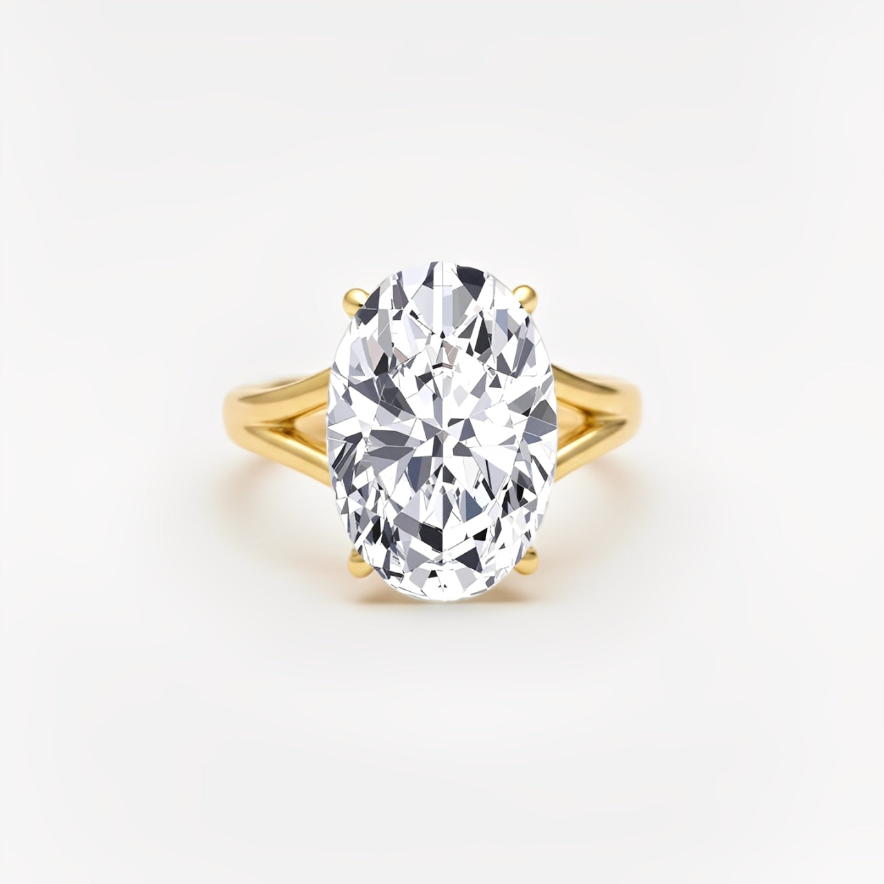 Oval Shape Lab-Grown Diamond Split Shank Engagement Ring yellow gold front view