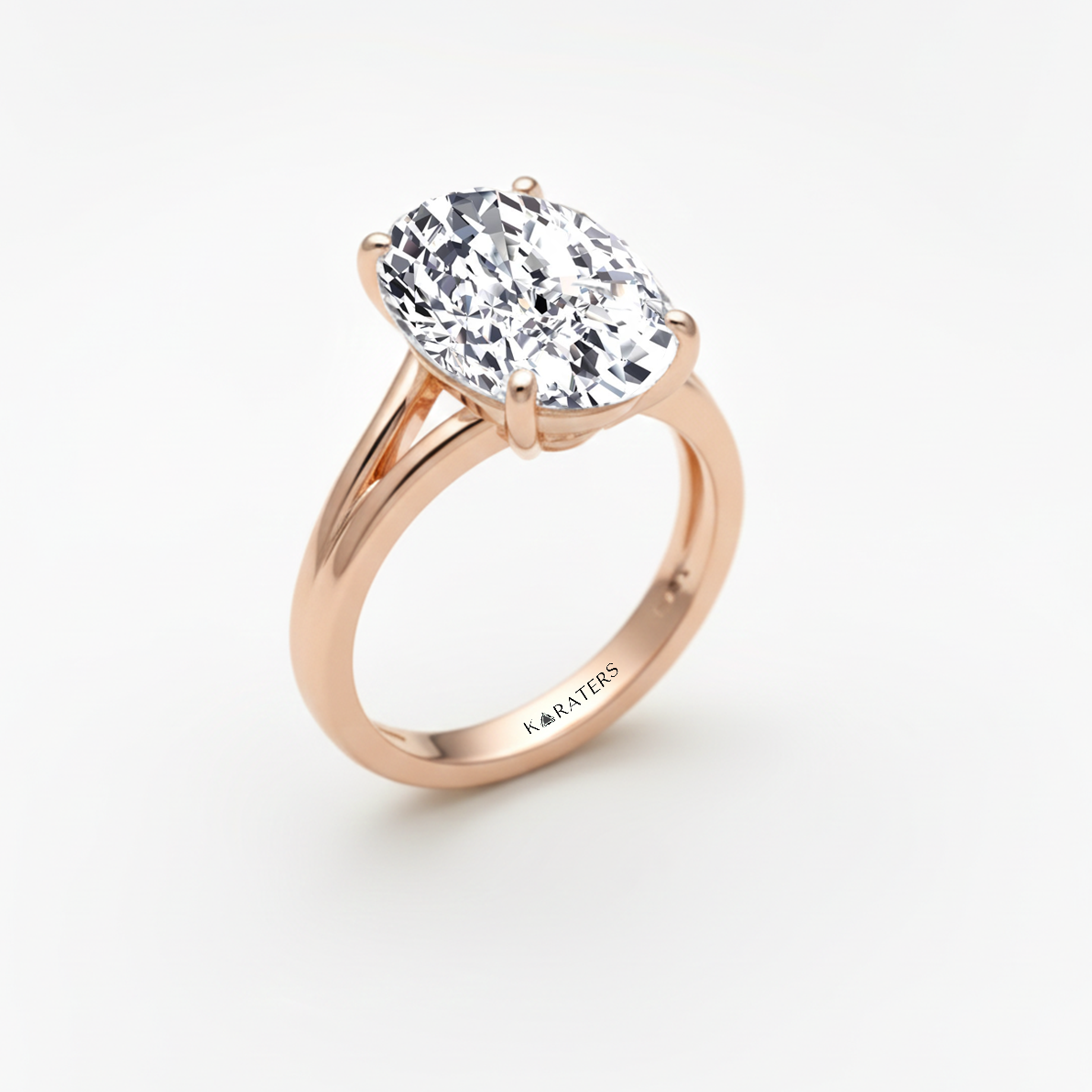 Oval Shape Lab-Grown Diamond Split Shank Engagement Ring rose gold slight side view