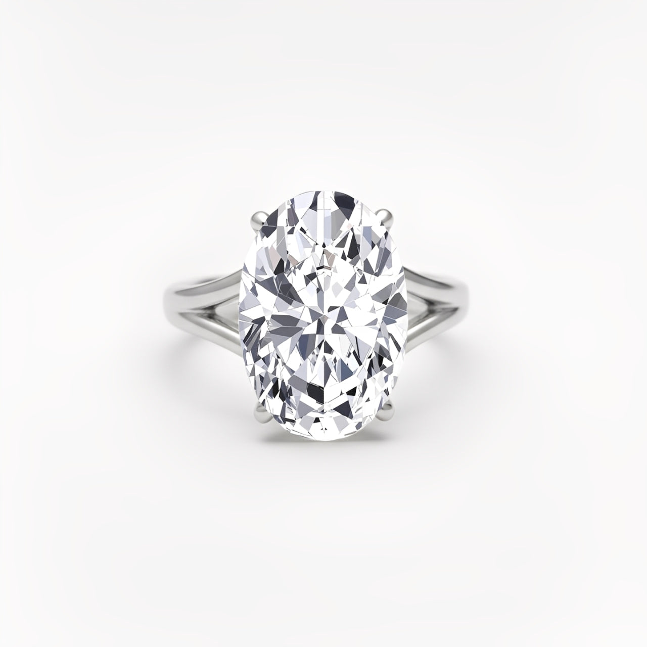 Oval Shape Lab-Grown Diamond Split Shank Engagement Ring white gold front view