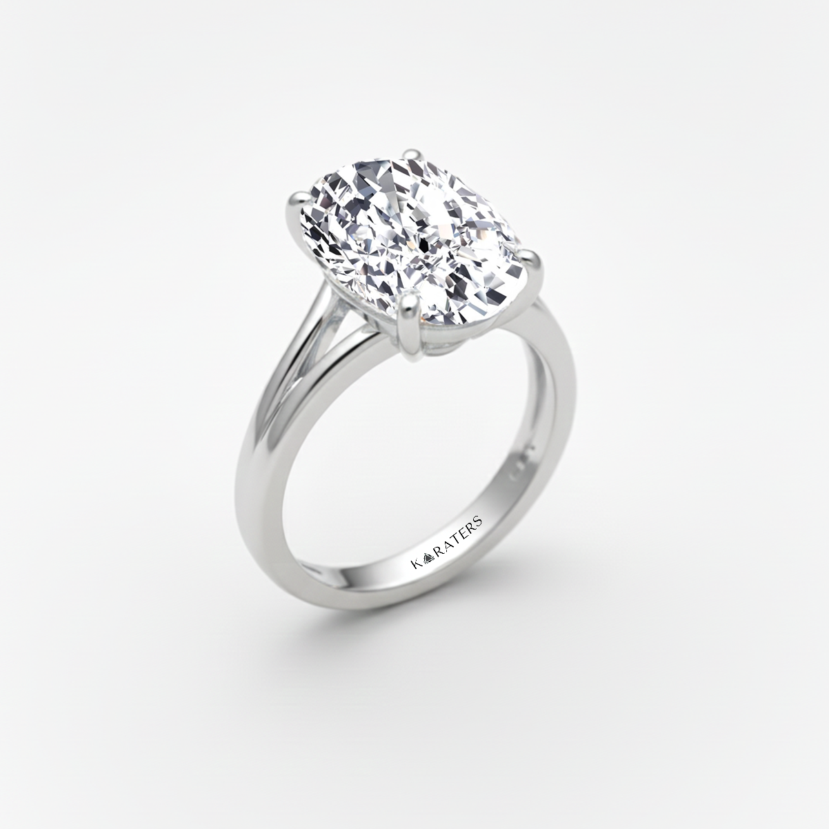 Oval Shape Lab-Grown Diamond Split Shank Engagement Ring white gold lifestye
