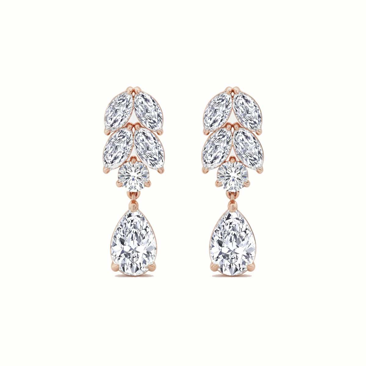 Rose Gold Pear Lab Grown Diamond Prong Setting Drop Earring