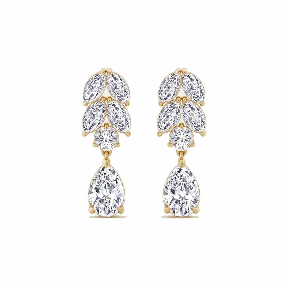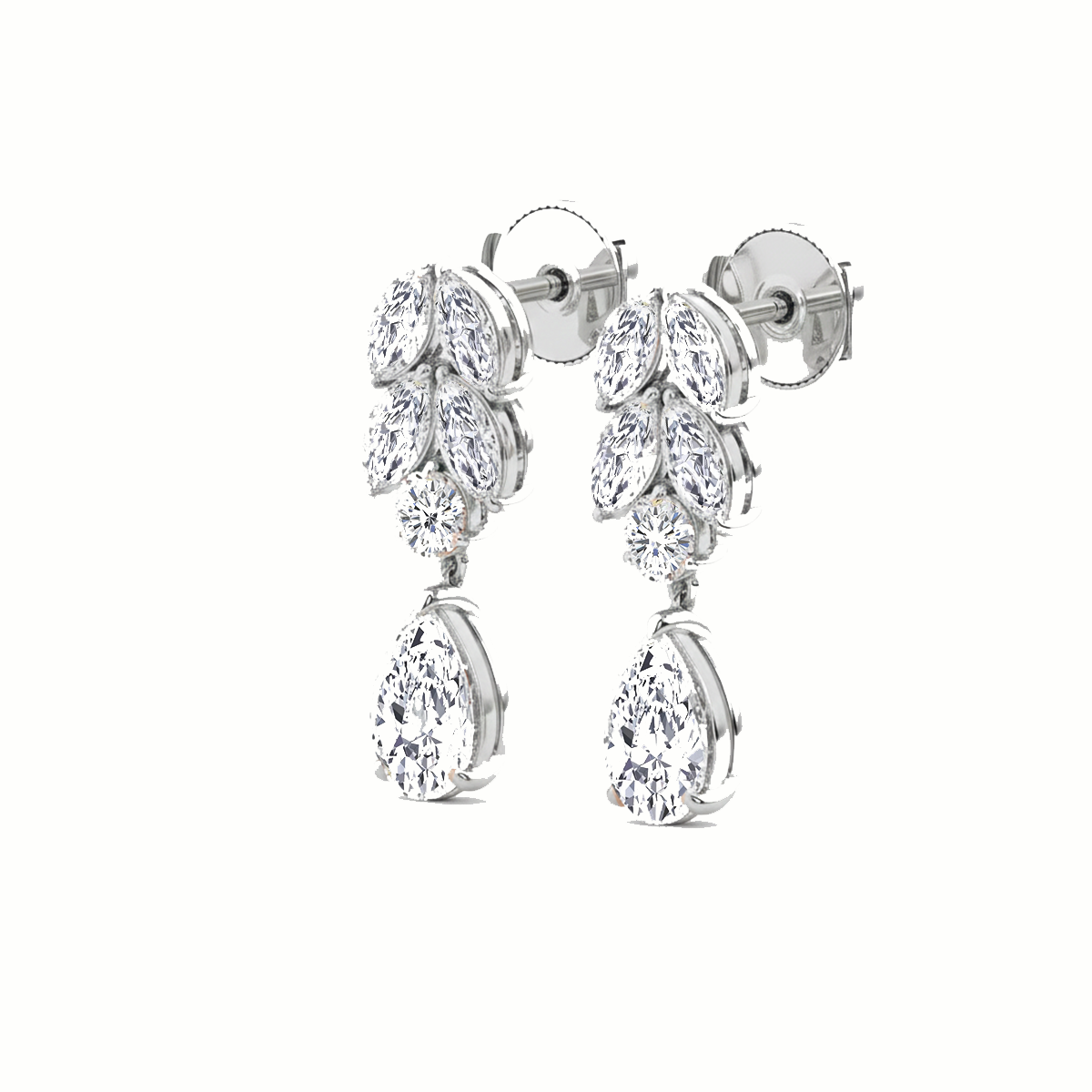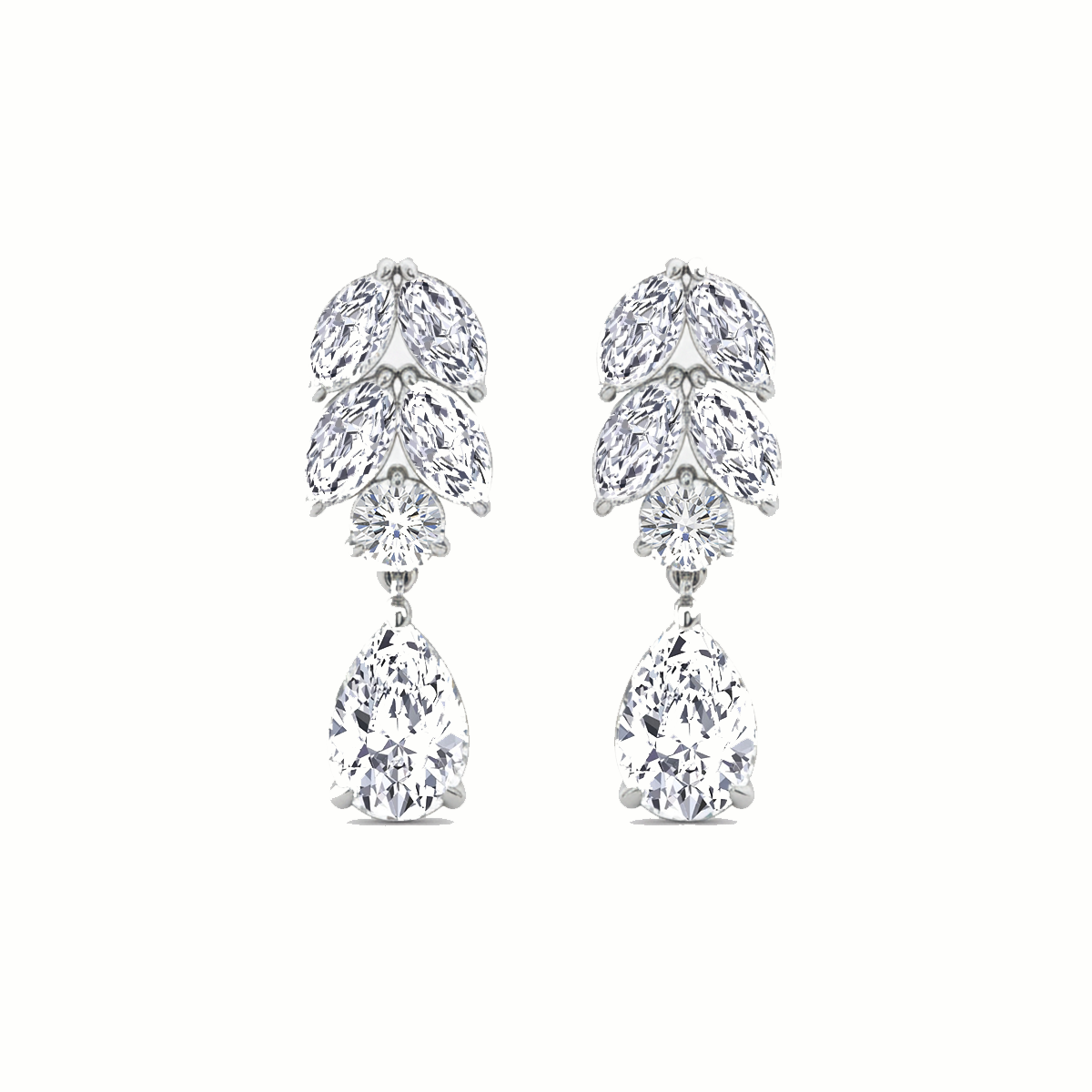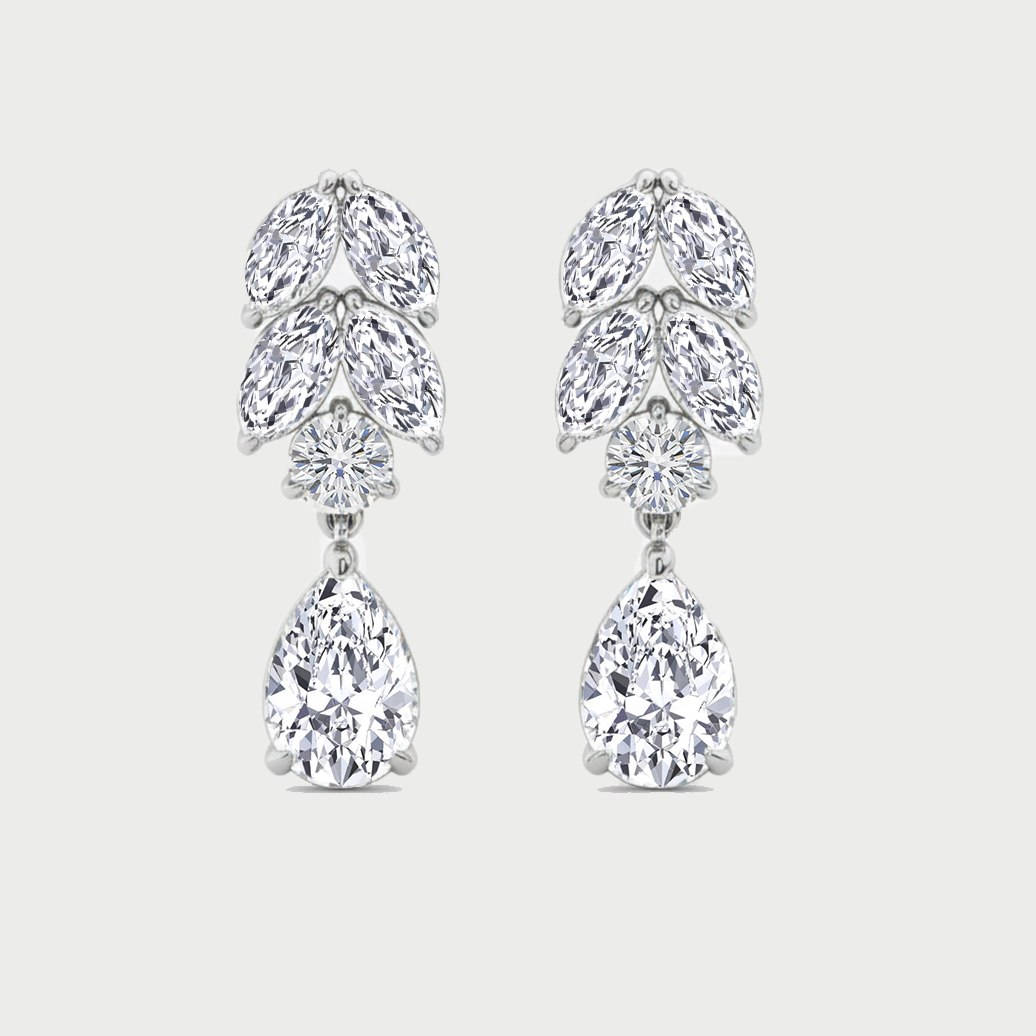 These elegant Pear Lab Grown Diamond Prong Setting Drop Earrings feature a seamless flow of Pear lab-grown diamonds, finished with a single larger pear diamond at the base. Each stone is meticulously secured in classic prong settings, allowing maximum sparkle and clean, refined detailing from every angle.