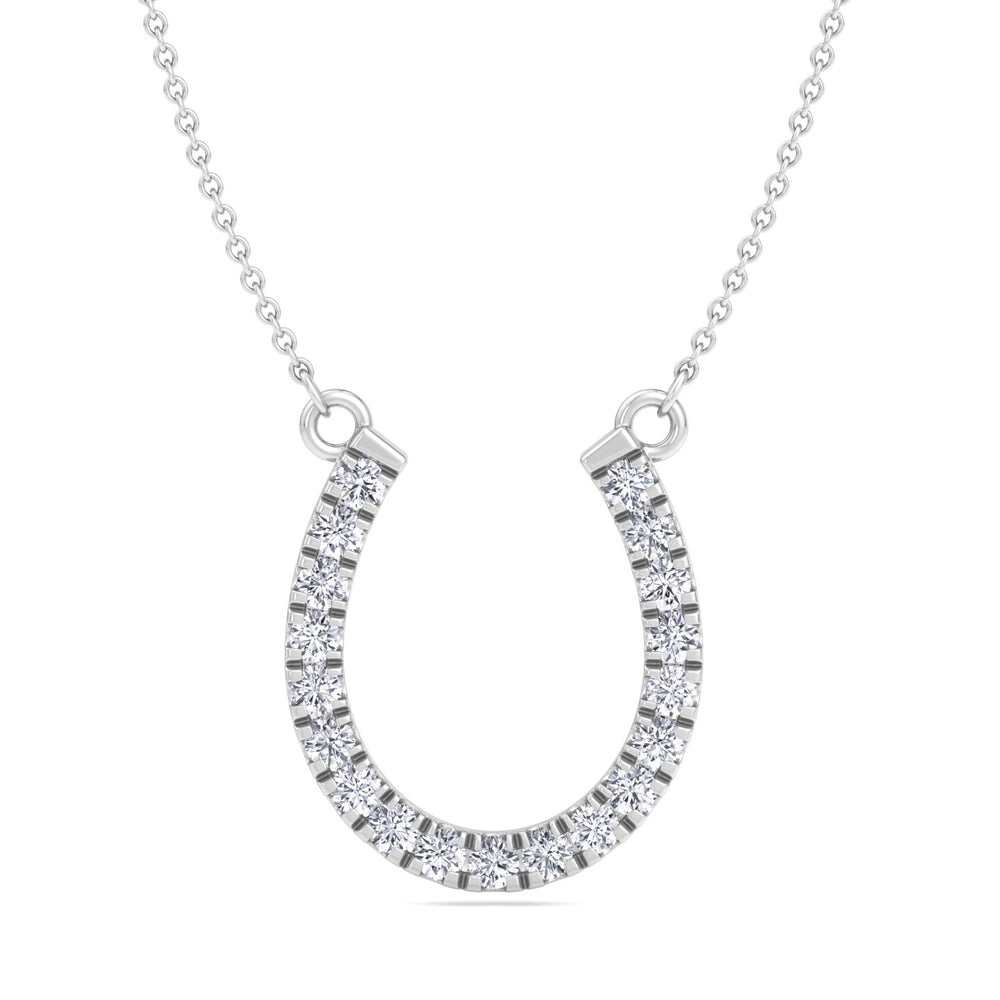 This Beautiful necklace features a Stunning horseshoe pendant made of Lab-Grown diamonds. The diamonds are Round Cut, which makes them sparkle and shines brightly. The necklace is made of high-quality materials and is sure to make a statement.