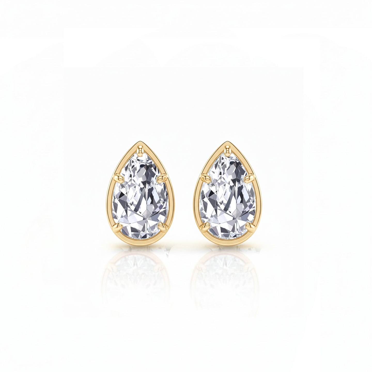 Prong Bezel Set Pear Shape Lab Grown Diamond Studs Yellow Gold 18K