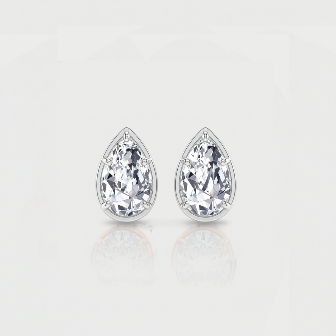 Elevate your everyday style with our Prong Bezel Set Pear Shape Lab Grown Diamond Studs, featuring a clean, modern silhouette enhanced by a dual setting that pairs a smooth bezel with secure prongs. This design highlights the pear diamond’s graceful contour while maximizing brilliance and durability, delivering a polished sparkle that transitions effortlessly from day to night—an elegant, timeless addition to any jewelry collection.