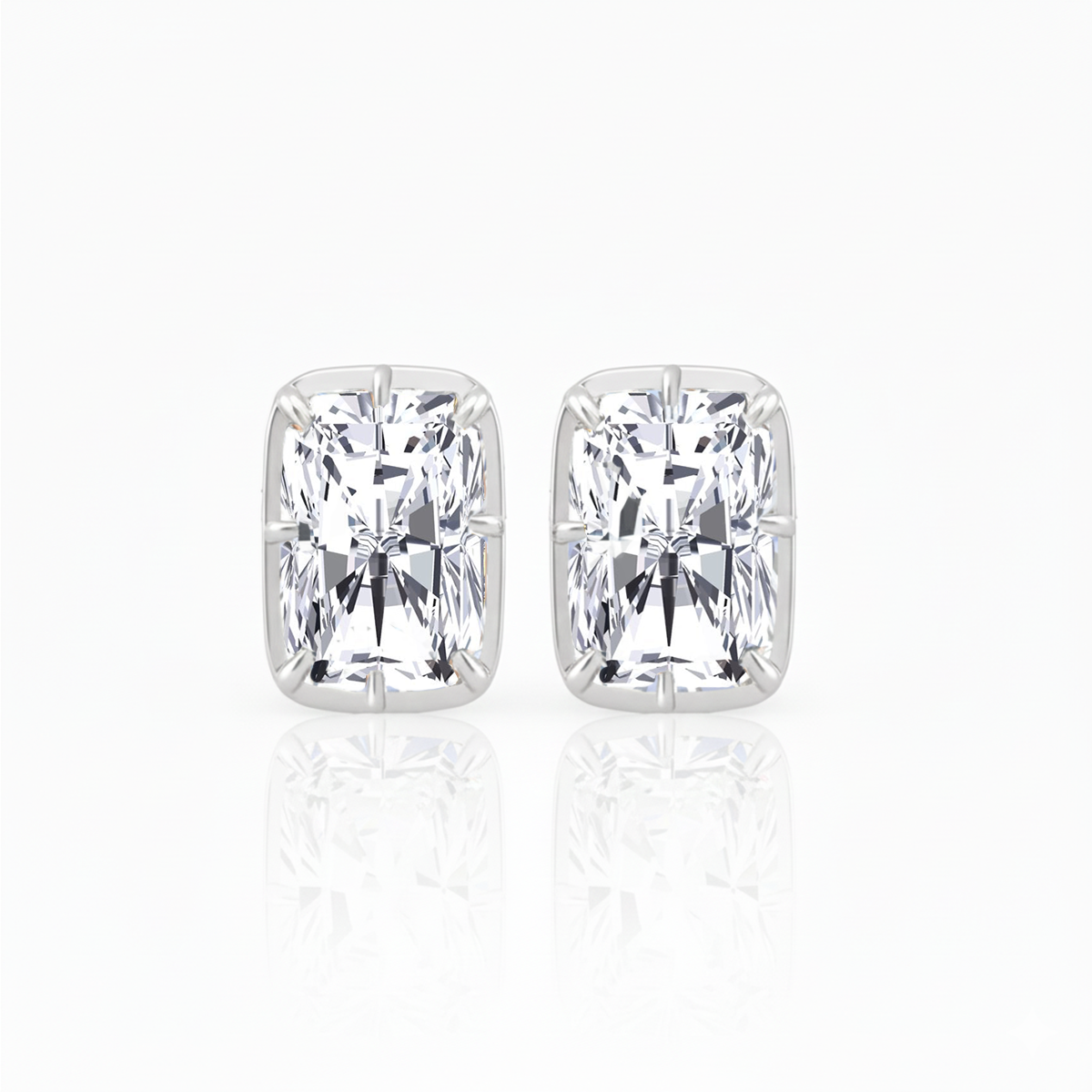 Prong Bezel Set Radiant Cut Lab Grown Diamond Studs White Gold 18K