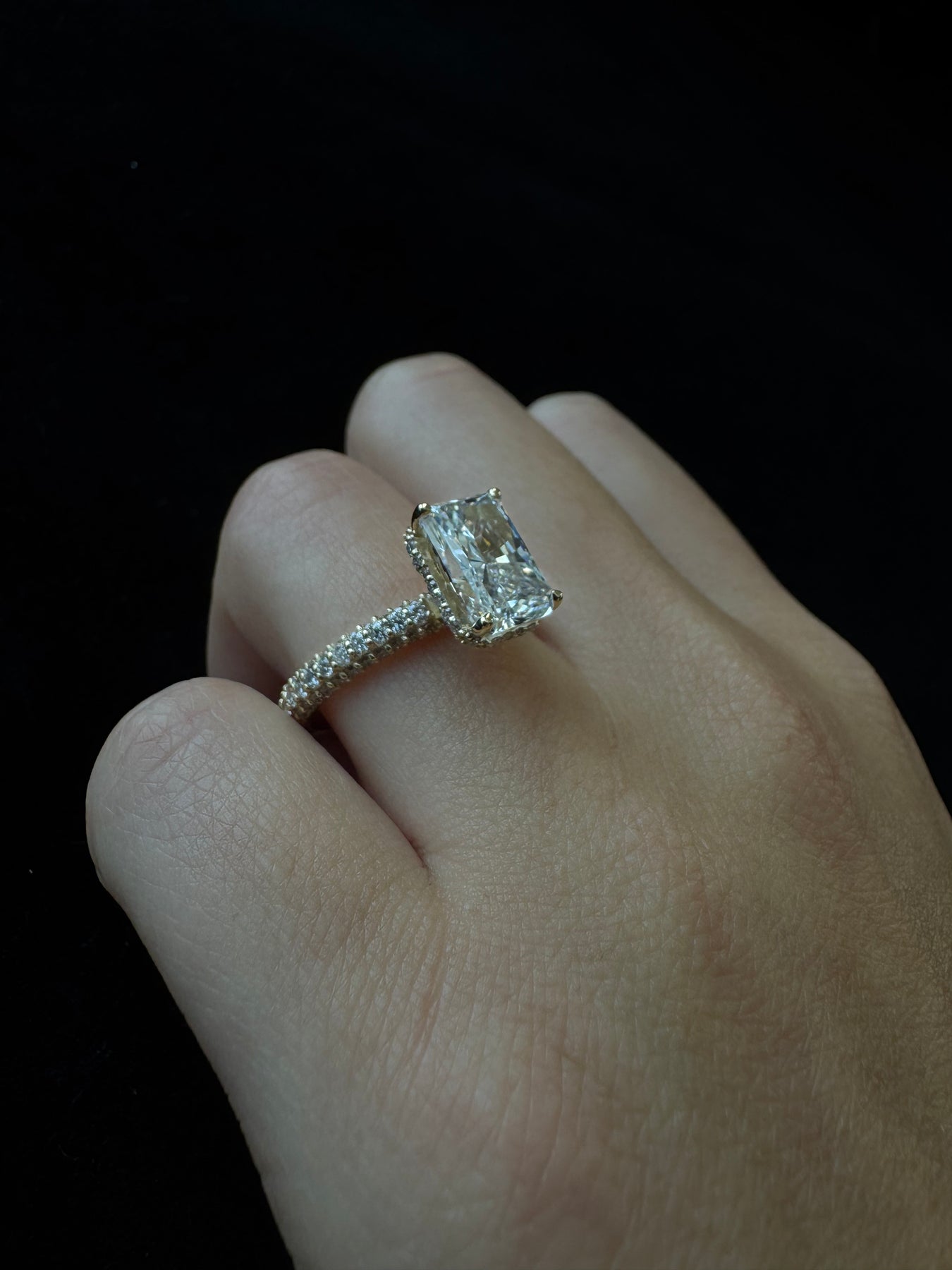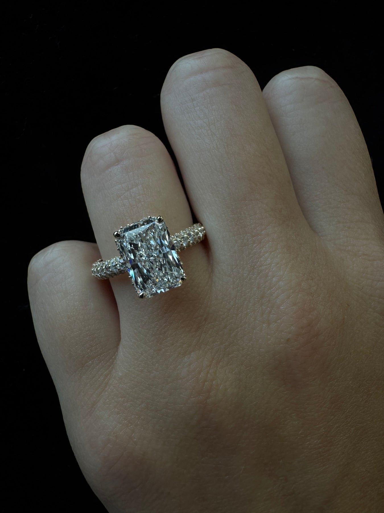 3CT Thick Pave Radiant Cut Hidden Halo Lab Grown Diamond Engagement Ring