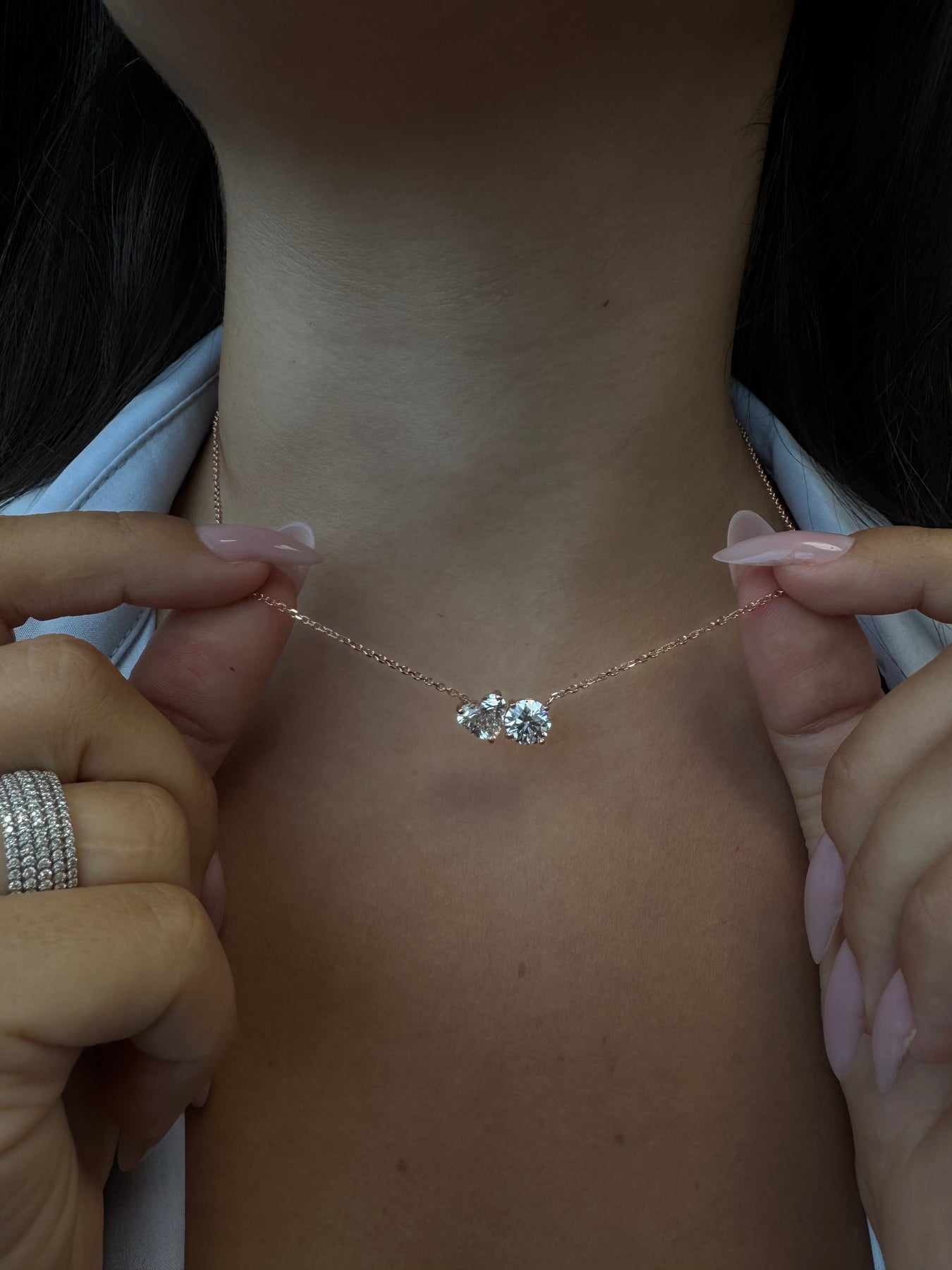 Toi Et Moi-Heart & Round-Shape Lab Grown Diamond Pendant-14K-18K-2CT-3CT-4CT-6CT-8CT-Rose Gold