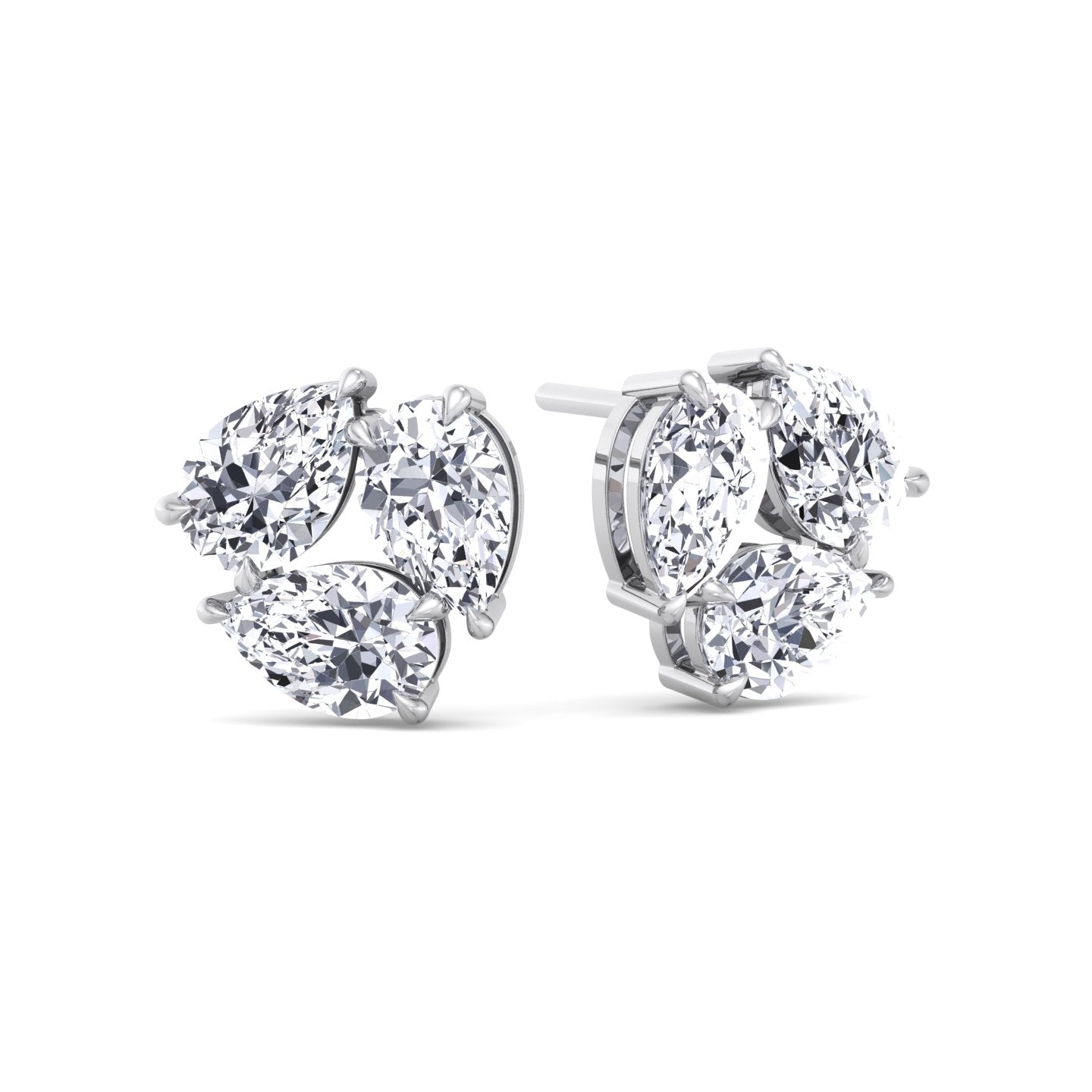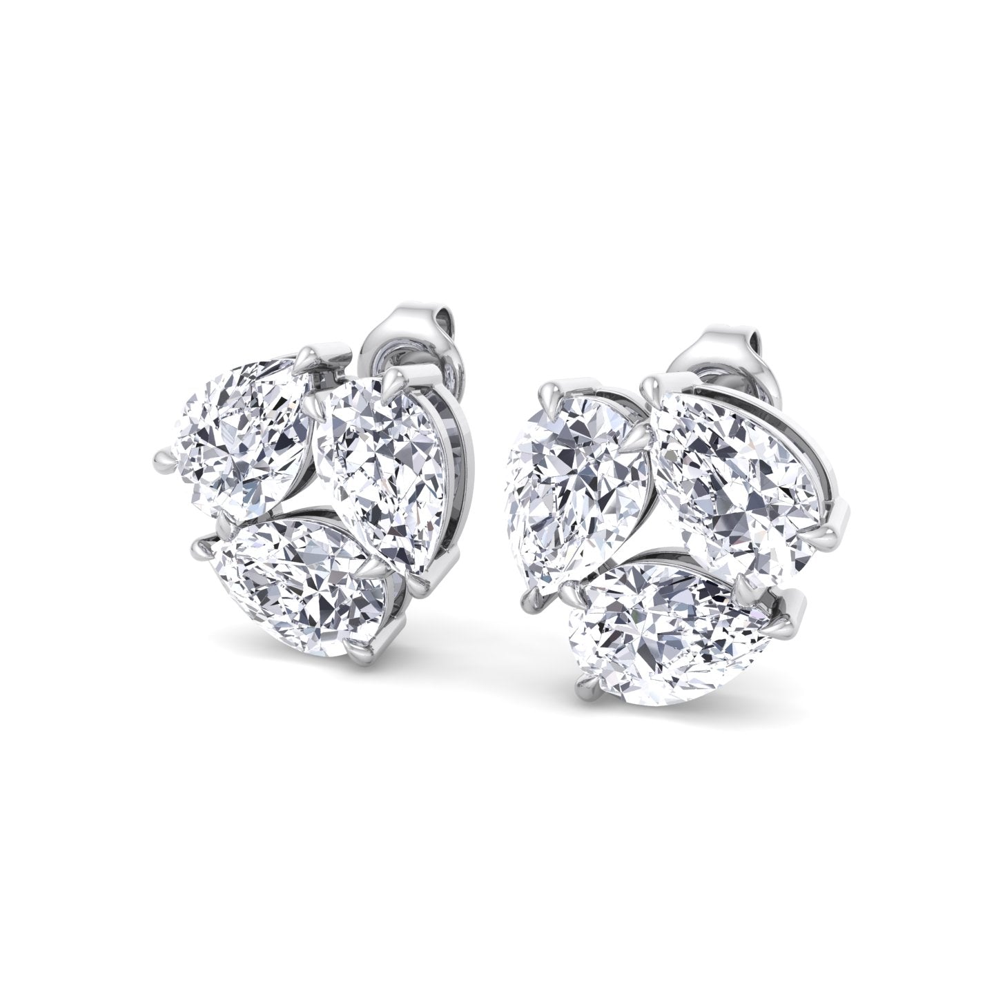 Triple Pear Shape Lab Grown Diamond Cluster Earrings White Gold 18K