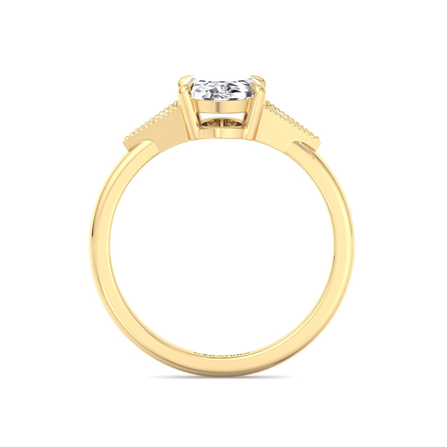 With its distinctive combination of shapes and vintage details, this ring blends timeless elegance with a unique artistry that stands out from classic solitaire styles.